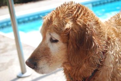 I'm a REALLY good girl. I'm happy all the time. My foster mom thinks I'm gonna wiggle out of my fur. (That can't happen, can it?) I LOVE LOVE LOVE stuffed toys. I gotta be quick around here though cuz my foster sister's a SHREDDER!! Usually I end up with just limbs but that's okay. My foster mom says I make a funny moaning noise when I have something stuffed but she's learned that's canine for, "Just try to get it!" We play tag then and my foster mom NEVER wins. I got groomed yesterday and I LOVED it. I was in a silly mood so Foster Mom had to trim the fur around my toes while I layed on my back. She didn't mind but now I look like I'm walking to the right all the time. Oh well. I can tell you from my former home that I LOVE water. BUT...I'm afraid of loud noises. I don't get destructive or anything...I just look for the bathtub when there's thunderstorms or fireworks. No biggee. I went to the vet today too. They liked me ALOT! I got current on all my vaccinations and I had to take a test for heartworm. I hope I pass. I guess we won't know til tomorrow. I'm at my ideal weight too and they said my hips are GREAT!