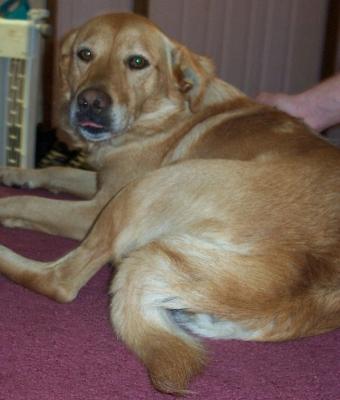 Within five minutes of arriving at my home, Goldie has been changed to "Goldilocks" by my four year old. Wouldn't you know it? She responds to it!! Goldie loves kids and is great with mine. She is hand and whistle trained to hunt, but I think she'll make a great well trained house pet - totally housebroken, too. An invisible fence would not be the best for her, as she was given up because she kept leaving the yard! She is verrrry sweet, just a little bit of snarling with my two dogs at first, but she was totally settled in within a half hour, now that my dogs know she is the boss! She is a Golden mix, said to be with a Lab, but she is pretty tiny so maybe something else?? I'll get more info after we do the vet check and all.