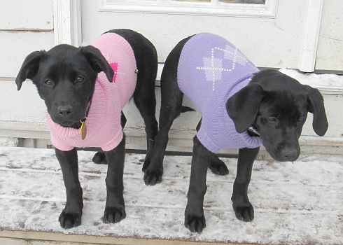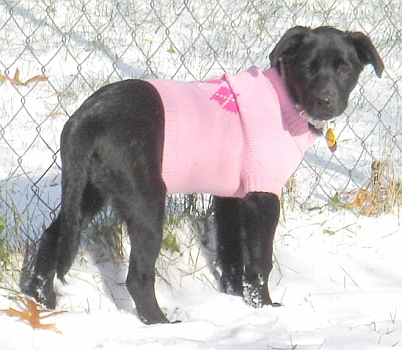 Since both girls were shivering outside, I decided to try their sweaters on again â they didnât fit as well. As you can see from the pictures, Gracie has grown quite a bit since the last time she wore it! You can also tell that she is not exactly loving being outside in the snow⦠Iâm sure she will get used to it soon.