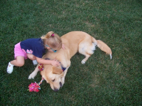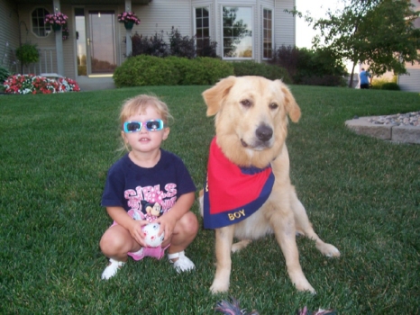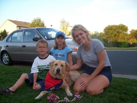 Gunner has had a great summer playing with the kids and going to all of their activities. He also loves to go swimming, riding on our family's pontoon boat and jumping off the dock to chase balls in the water. He is a GREAT dog! We feel very lucky to have him in our life. Our kids will be able to grow up with him and are learning how to work with him and teach him everyday how to be a good dog. He has made that part pretty easy.
