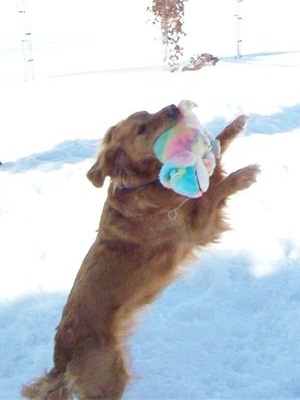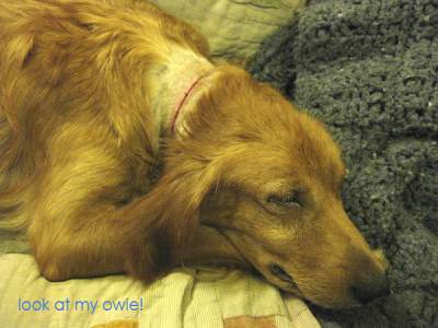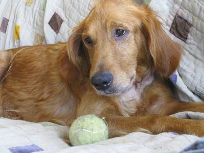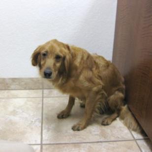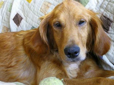 Little Miss Hannah arrived into town from SD this weekend.This sweet, very petite purebred golden girl is a now-retired mama of many pups. Hannah is only 5 years old, and looks more like she could be 1 or 2 because of her little frame and dainty features. Hannah even has that cute, coal black nose that normally fades after the first couple of years. Rich reddish fur, tiny paws, innocent little face, and big eyes...oh so sweet! Hannah weighed in at a whopping 46.5 lbs today - she could stand to gain a few but she is not too far off for her size.