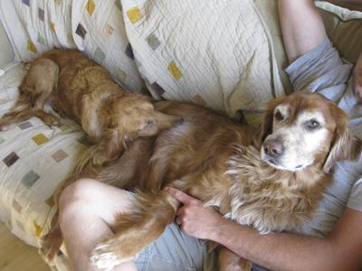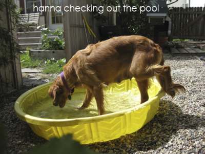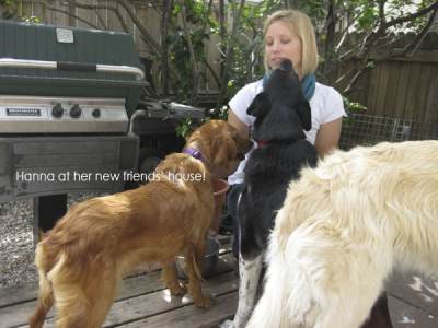 Her first day home after the great adventure, and Hannah has eaten 3 hotdogs, some grilled chicken, and then boiled turkey and rice for supper! She was one hungry little girl. Now, if we could just get her to, ahem, get rid of it. :) She has not relieved herself (either way) at our house since she arrived. We are working to get her comfortable with the dog run, and maybe she will be able to use that soon.