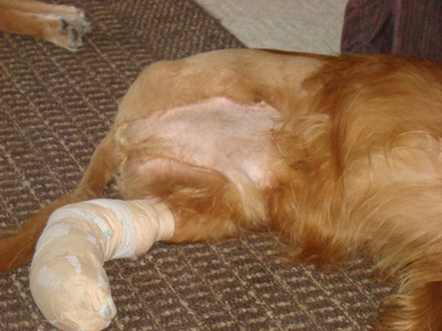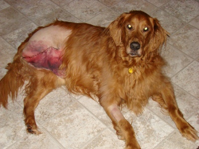 | We have always been the foster home to want to help dogs with medical problems so when Harley was in need of a foster to help him through a leg amputation we didn't think twice. Upon arriving to pick up Harley we found a beautiful dog who was loved to death by a wonderful family. In the almost one year Harley was with us he faced problem after problem but like a golden he was nothing but happy! A few days ago Harley began getting sick and just didn't seem like himself. Today an Xray showed something in his belly and exploratory surgery was done to remove whatever it might be. As a foster mom you feel horrible because your foster dog has to undergo (another) surgery from eating something in your home. It turned out Harley had not eaten anything he shouldn't have at all. Food was what was in his stomach because cancer of the intestinal wall, bile duct, and pancreatic duct had caused a tear in the intestine and everything was leaking into his abdomen. With no way to repair it and only a life expectancy of a few days due to the infection it would have caused we decided not to wake Harley up and instead let him go to the bridge without any suffering. The thought crossed my mind to wake him and spend one more day with him to let him know how much he was loved but that would have been selfish and with the opportunity to let him go peacefully we knew there was no choice to be made.