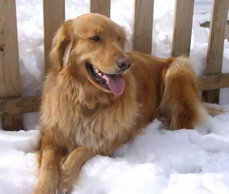 3/19/06: Meet Henry! Henry is a 1.5 year old (DOB: 8/20/04), purebred Golden Retriever. Henry is exactly what everyone pictures when you say the words "Golden Retriever." He is friendly, well-mannered, active, gentle, loving and HANDSOME. He weighs in at 81 pounds and is at a good weight -- he's just a big dog! For 1.5 years old, he is very mellow -- a nice feature given his large size. Henry was an only dog at his previous home, but he gets along famously with our dogs and cats. We brought our resident Golden along when we picked up Henry, and like two peas in a pod they jumped into the backseat of the car and were fast friends. Although Henry did not live with children, he loves kids and interacted with them on a regular basis.