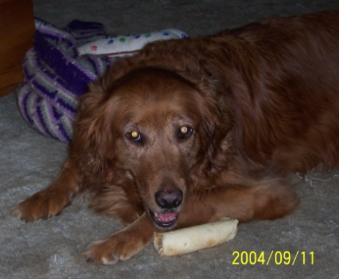 Honey continues to improve. In fact, she is doing so much better I am hard pressed to get more pictures of her! She loves attention and will butt right in for more pets if I am not giving her enough. Honey loves to follow you around and if you are out of her sight for more than a few minutes she will go looking for you. Honey is feeling so much better that she and Nugget have started to try to play more in the house. Neither one of them understand why I am always breaking up the fun and games! She loves rawhides and is discovering that pigs ears are really good too.