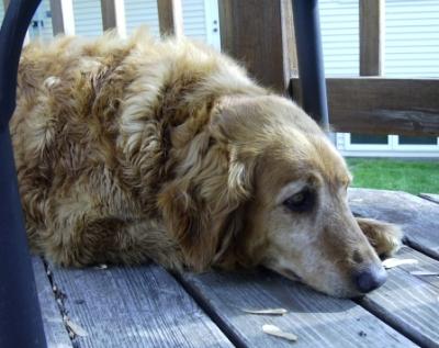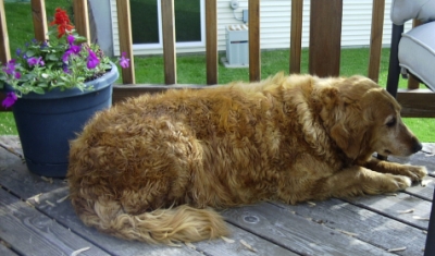 She is avoiding our Golden Armada, I think she's still nervous and unsure of the household. She ignored our cats at first, but has decided that Samcat the Fatcat's rear smells good, so she's following him around. We'll have to watch and make sure her interest doesn't grow!!