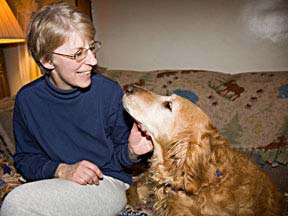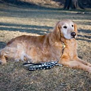Hope is a beautiful blonde purebred Golden who is quiet and mellow. She is a perfect representation of this breed's gentle and loving disposition. She is content to follow us around the house or just to lie at our feet as we go about our daily chores. She gets along very well with our two resident dogs and the house is amazingly quiet with the three dogs! All we've heard from Hope is some gentle purring noises when she's happy!