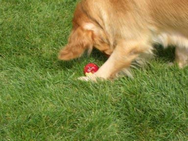 Hoppy has discovered that while tennis balls don't grow on trees, apples do! She considers apples to be the perfect fruit - a toy and then a snack. Watching Hoppy eating an apple is hilarious. First she rolls it around with her nose and pounces and rolls it some more. After she has the apple convinced that she is the boss, then she settles down and very carefully nibbles on it. After each nibble, she licks the exposed fruit. She really seemed to listen when I explained to her that apple seeds contain arsenic, and since she is not a rat and she does not have a heart condition, I won't let her eat the seeds.