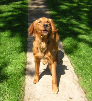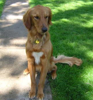 6/2/05: Hunter is a 13 month old medium to dark neutered male. He's rather tall, but he's lean. He met my crew with no issue, seems to submit rather easily when told to by the other dogs. As of right now, he's totally staying away from my young male and is trying to stay in another room from my other foster Zoe 05-091. He's been told his place by my cat and even by my 13 year old Golden. He doesn't seem bothered by any of this and in fact is totally fascinated with the rabbit. He lived with kids in his previous life and I think he would be fine with 5/6 year olds and up. He hasn't had any training but is housebroken and seems very intelligent, so training won't be a problem but will be a requirement for his new owners. More later as I get to know him.