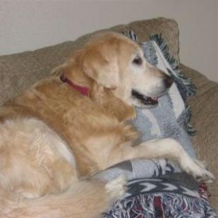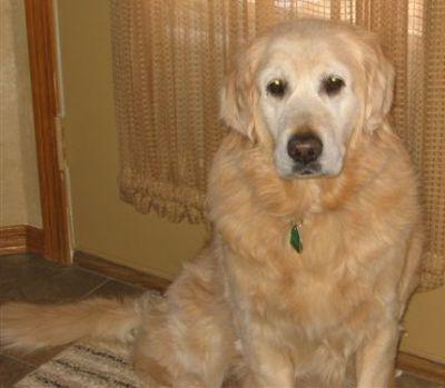 Izzy has bilateral aural hematoma in both pinna (ear flaps), meaning her ear flaps are ?thick? with fluid. She also has ear infections in both ears which are now being treated and her prognosis is great. The hematoma can be surgically fixed--either one or maybe both the ears (due to chronic, untreated ear infections). This girl knows most all commands - sit, stay, lay down, fetch, come?.I could type for days on this girl and not come close to being able to describe what a wonderful Golden she is! Izzy of course, wants to be petted a lot?.lays by you on the floor, looks outside to see what is going on, and never a bark?.just a wonderful temperament! We are so glad we have had the honor to meet her and enjoy her, even for a short time. She's just about as beautiful as they come and a personality to match!