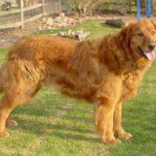 Jake is medium red-gold in color and has a thick coat. He was kept outside a lot in the winter and was brought into the house when it was really cold. The owner did have have him in the house too but both dogs loved to be in the snow. He is a stockier Golden and could lose some weight. He is used to being fed with Scarlet and they could eat out of each other's bowls so it is hard to tell who got what.