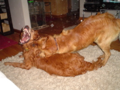 I met my new foster brother Zack without incident. It only took a few hours and we are best buddies now! Zack and I play rough outside. I really enjoy following Zack around the house and yard.