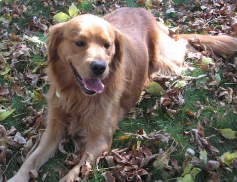 He is very good-looking! He?s got the cutest little face! He?s got to be the smallest Golden I?ve ever seen?he can?t weigh much more than 50 lbs. The previous owner said he was the runt of the litter. He seems to think he?s a lap dog---when my teenagers sit around on the couch, he wants to sit on their laps?he just rolls over and wants to be petted!