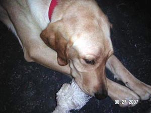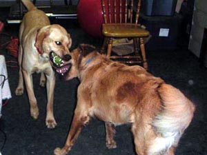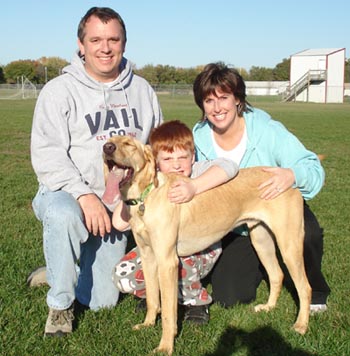 I'm Jazzy's new foster mom. We got off to a great start together, because after I picked him up we stopped at the pet store for.....tennis balls! I've never seen a dog so skilled at fetching and catching tennis balls. He can catch a pop fly or a line drive...you name it. He then drops the ball at your feet and waits patiently for the next throw. It's great fun for our four-year-old daughter; no matter how unpredictable her throws are, Jazzy catches and returns. And despite his size, Jazzy is a gentle giant. He has never knocked her down...not even with those high precision ball drops.
