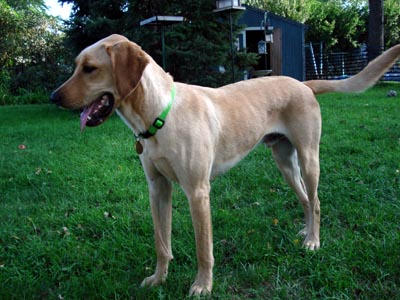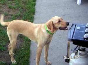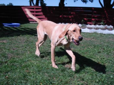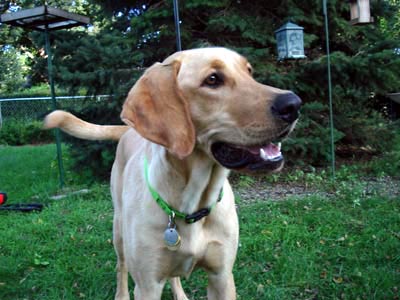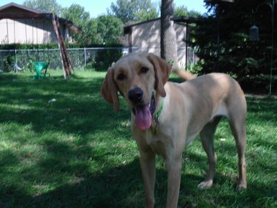 We will be heading out Friday, but you still have Wednesday or Thursday to meet him. After that you are talking a long road trip to his new foster in Sioux Falls... though the drive would be well worth it. Jazz Man isn't all yellow lab, there's a little something else in there which makes him taller, longer, a bit of curl to his tail and a more setter looking face. Bottom line is he is a very sweet boy and would do well with kids a bit older only because of his size, I don't think he really knows how big he is. Also, got some numbers wrong on his age. He is more like a year old, not four.