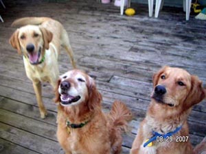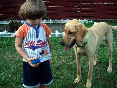 We enjoyed another wonderful week with Jazzy. As more and more people have met Jazzy, I've been asked many questions about him. Some wonder whether he's too big for young children. We have a very petite four-year-old daughter and Jazzy's size has never been a problem. He is extremely gentle and considerate around small children. Others have wondered about having a dog that's obsessed with fetching. Jazzy certainly does enjoy it, but if I hide his tennis ball he's more than happy to play a different game. Hiding the ball also tends to bring out his fubsy side. Every night when I go to bed, Jazzy jumps up, lays down with his head across me and sighs with contentment. He may not be a Golden, but he has a heart of gold.