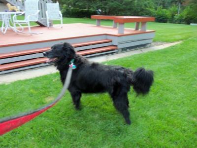 I took a couple of full body pictures so you can get a better idea of what he looks like. When he was a puppy, we were told Golden Retriever/Black lab mix, but I’m guessing more likely Golden Retriever/maybe Newfoundland along with something else mix. He’s not as tall or big as a Newfie, but he has the rounder body style. We’ll be scheduling his vet appointment and a grooming appointment for next week. It will be interesting to hear what breeds they think he may have in his genetics.