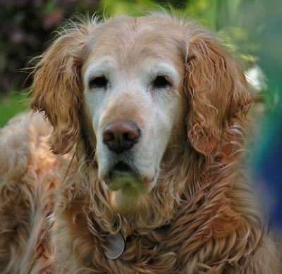 Jessie has been a girl just full of surprises! The initial information we were given on Jessie is that she was picked up as a stray last fall and was at an Iowa Veterinary office, where she was adopted by a family. The family's circumstances changed and after six months as an outside dog, Jessie was returned to the Vet to see if they could place her in another home. The family then contacted RAGOM when they found out Jessie was going to be euthanized instead of placed. We were told her name was Jessie (or Rosie - we're not sure yet), that she was spayed and approximately 9 years old. So off I went to pick up a sweet white-faced senior from an Iowa transport run.