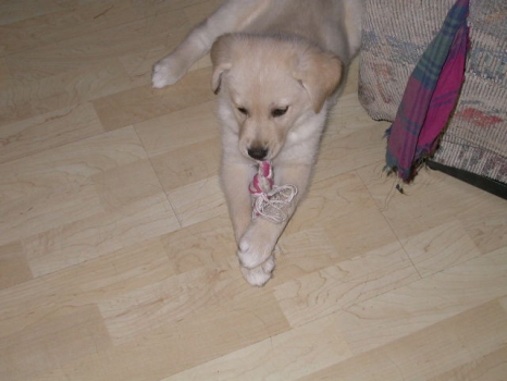 Unlike poor little Neko, Kai LOVES his crate. He actually prefers to sleep in the crate than with us!! One night we wanted him to sleep in our bed with us and he laid there for a little while and then got up and whined at the end of the bed until we let him down and he went strait to his crate! He is growing all the time, not only in size, but in personality, and it's soooo fun to see. He was our little mellow pup at home and then a bundle of energy every time he saw other people or dogs. It was pretty funny...he was probably the most hyper dog at puppy kindergarten (which he has graduated already), and then at home, he was ALWAYS mellow! Lately, he definitely has more energy, even at home, than he used to. We love it because he's still not that SUPER hyper type; he's just fun!