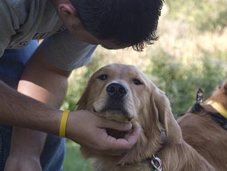 We are back from a fabulous day at Snail Lake Park. What wonderful weather for all of us to meet and greet the many families that are associated with RAGOM. And surely, that all came to see John-Boy. In his newest picture you can see him soaking up the love and admiration of one of the picnic goers. He is such a sweet little dog. Each day he is coming more and more out of his shell. He still is a little doorway challenged, but he is working on it. Oh, how he loves to play ball! He chases after it and throws it in the air for himself to run after. This is a dog that loves being outside. At the picnic he even started seeking out people to pet him and rub him. Such a big baby.