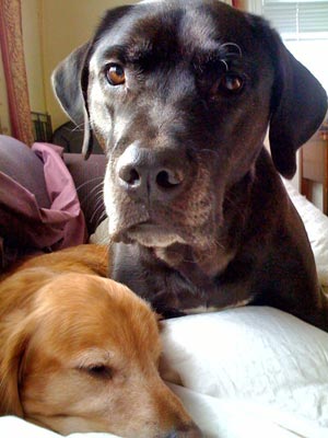 You taught Harley everything. You snuggled him, ate bones with him, ran circles with him, you loved him. You would take him into the bathroom & shut the door to protect him from storms. You would let me know when you both needed to eat, a treat, water, outside. He knows you are gone & won't do these things without you. He's avoiding the places you slept together & just rests his head next to it as if you will return & find that place once again. He is lost without you yet since our visit he seems to know you are gone.