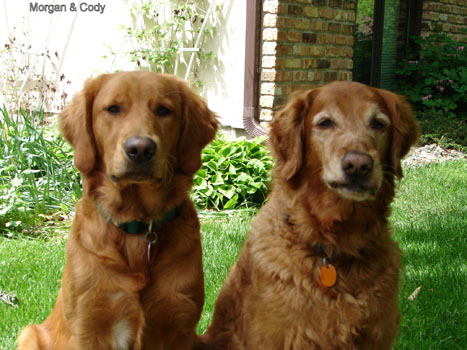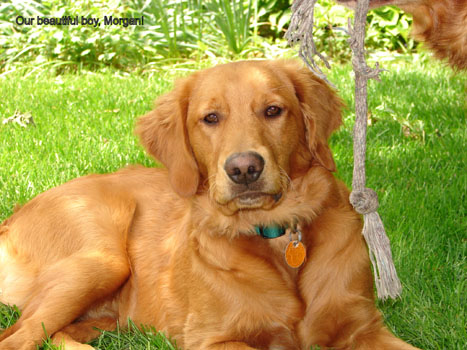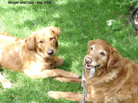 Our little Morgan isn't so little any longer. In fact, he is almost as tall as our 11 year old Cody and is definitely heavier than Cody. Morgan has completed his basic obedience training where he performed extremely well. Morgan's next big adventure is to be neutered which is scheduled for July 6th and also to go to the lake to learn to swim and retrieve from the water. I'm anxious to see if Morgan will leap out from the dock into the water just as he leaps off from the backyard deck when we throw the ball; he is just so graceful.