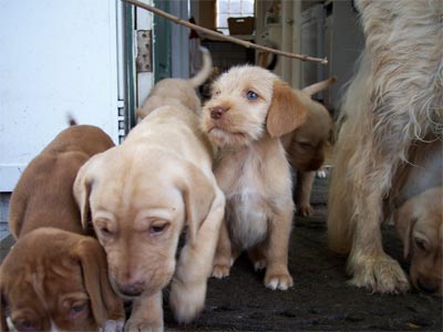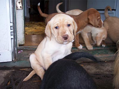As you can see by the pictures Julius has grown quite a bit. He is the leader of the pack. Julius was the first to step out side - although very cautiously - and he was the first to climb the steps to get upstairs. Today because it was so nice I let the puppies outside. Julius was the first one out but he did not think it was a good idea to get off the steps and go exploring. He wanted to stay with the pack.