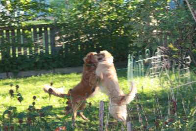 Katie is learning to love the golden life! As you can see in the pictures, she is playing with her foster sister - chase, dig hole, and stay away from that camera. Katie is very camera shy so it is hard to get good pictures of her. Luckily it’s hard for her to see the camera with her head in a hole.