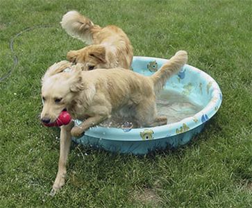 Kato is a very tired boy tonight. He and Riley played so hard all day today. I got the kiddie pool out and they jumped in and out of the pool, played chase with the Kong, even tried playing tug o' war with the Kong, which is rather difficult to do. The picture I took today is Kato trying to make a fast getaway with the Kong. He is a pretty quick boy, but Riley was right behind him. Those boys sure had fun dodging and darting around the yard at top speed.