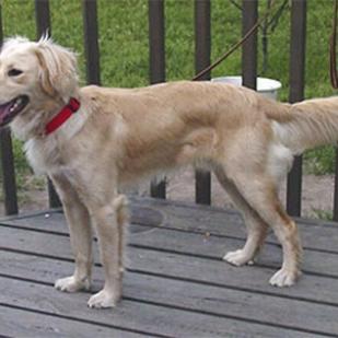 6/15/06: Kato is a beautiful blonde Golden boy found as a stray and is believed to be around 10-12 months old. I think he looks younger than that, so we will have to see what our vet determines. Kato seems to have been in a house before, listens well, walks on a leash with very little pulling, and loves to be around people. Kato is a bit thin. I think he probably only weighs about 40 pounds if that. Depending on his age, he may be a small Golden when full grown.