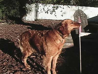 Beth has made WONDERFUL progress! This morning she ate out of my hand. I moved her to a larger crate before I left for work and that made her very nervous. I left the door on the crate open and baby gated her in my kitchen so she could see my resident dogs if they came to the door. After work I carried her outside where she really blossomed. We spent about 90 minutes outside and she quickly went from frozen dog to explorer dog. She sniffed everywhere. She pooped and peed (to great praise from me). She decided to follow my Golden (Wiggins) around the yard. She even did some very playful bounces around him. I am completely amazed at her resilience. When I brought her back inside she got shyer again, but still MUCH better than last night. I kept her out of the crate so she curled up next to it. She has ventured away from this safe place to explore another room or two. When she was running outside, her back end seemed a bit wobbly. It could be from lack of use, but I will ask the vet to check it out when she goes in to be spayed. As I am typing this, Beth has ventured into the room where I am. She is really brave. What a girl!