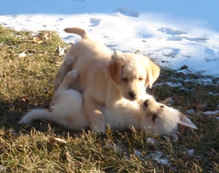 I really can't think of any complaints to tell you about these two boys. They are GREAT at night - quiet the whole night long. They are great when you need a break and put them in the playpen for a bit. They are really good when they are given free roam of the main level of the house. (As long as there is someone in the room to watch them.) They play together really well. All in all, Kenai is an outstanding puppy!