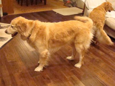 Buddy is a wonderful dog.   He rides well in the car.   He gets along with our two resident goldens and didn't seem to mind cats when he was at the shelter and the vet.  He likes everyone he has met. He takes treats very gently but isn't really interested in them.    Buddy loves to be outside and does well on a tie out.   He does pretty well walking on the leash but is very curious to his surroundings so you have to remind him to heel.   He hasn't had any accidents in the house and is very comfortable with the household noises so we think he must have been an inside dog.