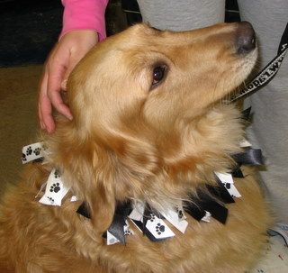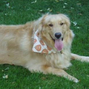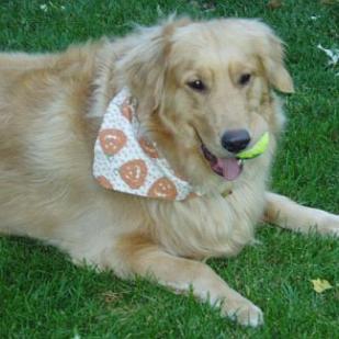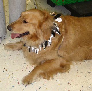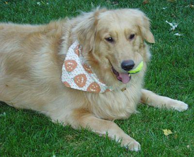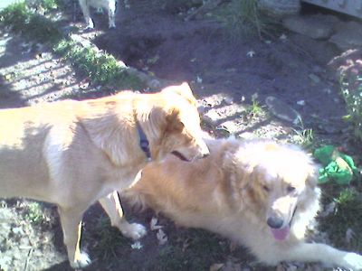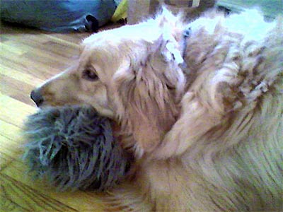 When I say the Koda is a big boy, I mean it - yesterday at the vet's he weighed in at a whopping 110 pounds! All of his blood work has come back normal, so no problems with his thyroid and he is now up to date on his shots. Koda needs to lose some serious weight and not just for the typical health reasons. The extra weight he is carrying is not good for his hips and we are hoping that with weight loss, a proper exercise program and glucosamine/chondroitin sulfate supplements he will not need to have surgery on his other hip. Currently he appears to be without pain and has followed me up and down the basement stairs without any problems. He also lays like a puppy with both legs out behind him (frog style) and it is amazing how quickly he can get up from that position and across the room when he sees a toy he wants. So far Koda has not interacted with the two resident Goldens - he does not appear to be interested in playing with them. He will, however, steal toys from them.