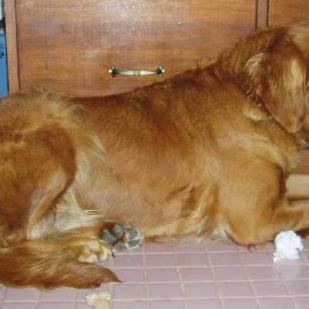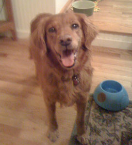 Koekers (formerly known as Fancy 04-270) came to my family in the late summer of 2004. We went through the RAGOM process in hopes of adopting a dog who would be a friend to our then 11 year old Golden Retriever named Chester. We assumed we would get a "standard model" GR, but we met a dog named Fancy and could not help falling in love with the terrified little retriever. She was thin, her coat had no life to it and she wouldn't make eye contact with anyone.