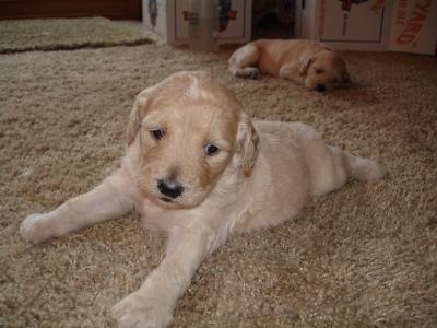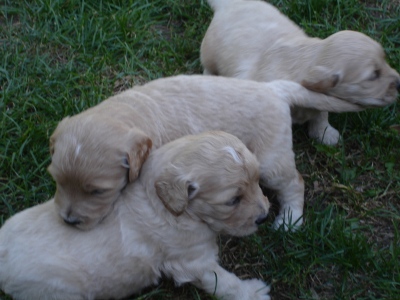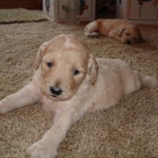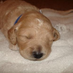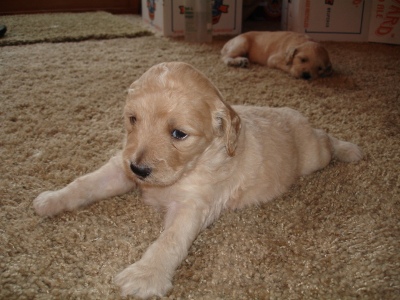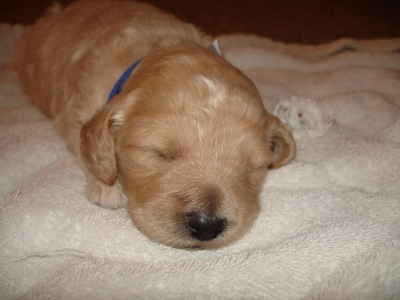 Kopi is growing up very quickly. Just last weekend when I got him to my house, his eyes were only half way open. Now he's a cuddly, playful walking puppy. He loves to cuddle with people. If he's not cuddling, he's trying to play. He loves to get belly tickles and he'll starting making growling/playful noises!! They are so cute you can't help but laugh at him. He's the most vocal out of all the puppies with his cute grunting noises. He loves nothing more than to snuggle up in your lap and sleep. He also loves to play with his siblings. Kopi has conquered the concept of walking and loves to wander all over the place, but as soon as you call him, he'll start wandering your way!!!