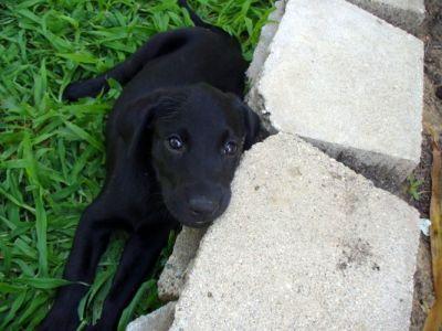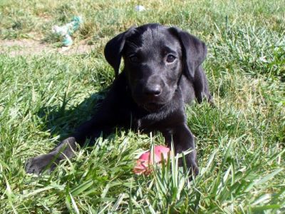 7/9/07:  My dad was coming home from Alabama last night, and while driving on Interstate 70 through Missouri, he saw a crate fly through the air and hit the truck in front of him.  He stopped immediately, because the crate was full of Labrador Retriever puppies.  One puppy, who was on the side of the crate that struck the truck, died instantly.  The other pups were scattered all over the Interstate. Two semi-trucks blocked four lanes of traffic, and the truck drivers as well as others helped my dad gather up the remaining five puppies.  The pups were terrified, and were so young that they could hardly walk yet.  One of the pups (now known as Dodger 07-440) was limping and crying, and pulled himself under the exhaust pipe of a car, burning some of the hair on his back.
