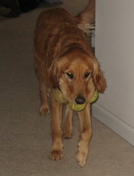 Lauren is a happy and energetic puppy, full of promise and mischief. She is being fostered with her twin sister Kelly and three RAGOM rescue dogs. Her favorite foster brother is Max, who loves to play tug-of-war with the girls, and is fairly gentle with the puppies, who don't always return the favor. Max is a 17-month-old puppy himself, and his head is almost bigger than Lauren, but they don't care - once I watched Max loping across the yard, looking back in mock fear, with two little girls chasing him, heads and tails high, telling him "you BETTER run!"