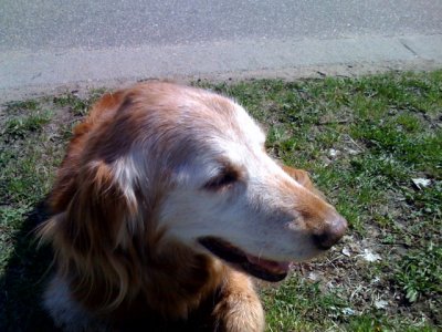 I will never forget the happy look on her face the day I picked her up from the pound. She smelled like she needed more than one bath to get the smell of the outdoors out of her, she looked like she was a bag of bones, her back legs could barely get her into the car....but she had a huge smile on her face when she saw me, and her tail would not stop wagging - the circle wag that told me she was happy to see me then and happy to see me every time after. I will always have that picture of her engraved in my head, not forgetting all the other great and happy memories she gave us for the few short months we had her. Yes she taught us a lot and she will be missed dearly. it's the cycle of life and we shall meet again.