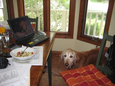 Leah took a turn for the worse late last week, and it was downhill from there on. Her platelet count was 1/2 of the normal; her spleen 4-5 time normal and her protein count almost 2 times the normal. It was just a matter of time. We were still willing to take a chance and hope that her spunk and resilience would overcome her prognosis. But when she spent the whole night panting and uncomfortable - inspite of the morphine, and when she had drops of blood coming out of her mouth - the sad look in her eyes told me it was time to let her go. She wanted to be happy and pain free; She wanted to run the green meadows and rolling hills, and swim in the clear cold lakes and not feel any pain. I know she loved the ice cream cone she ate on her way to the vet, and she loved that Jedi stuck to her all night last night and all through the day today - though she would not let him eat her cottage cheese this morning...the definite growl of the no-nonsense female :) I hope and pray we did the right thing by her and helped her get to her happy place. I hope and pray we gave her a great life - even if her stay with us was short.