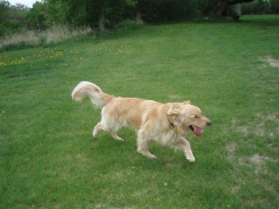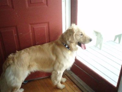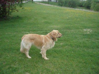 5/11/07: Friday Afternoon: we picked up our new 1 year old foster Golden (who we thought was "Lou") from a wonderful International Falls Humane Society employee. She agreed to transport him halfway to us to Bemidji (even with the price of gas at a scary $3.19). She told us that the family who originally adopted Lou from their HS had changed his name to Sam and he has been Sam for 6 months. Now he is Lou/Sam 07-321.