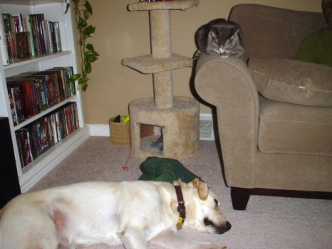 The cats are ok. Lucy (yes, we have a Lucy cat, too!) likes to play with my tail. I don't mind.