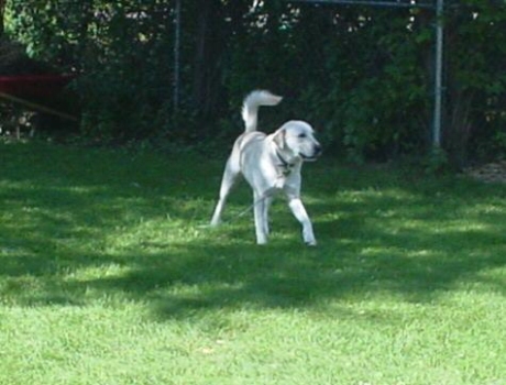 I am in love with Shane and Rosie. They like to play with me and Shane and I were even wrestling the other day and it was fun!!! I've heard stories about him trying to eat other foster dogs, so I was pretty cute in my approach to him. Now he likes me and we have fun! Lizzie is ok. She growls at me sometimes, but she said something about not liking me whacking her in the face with my tail. Oh well. When a girl's gotta wag...a girl's gotta wag!!! BARK !! (oops. sorry.)