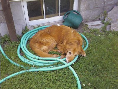 Lucy's Nest - she likes to lie in the middle of the hose when it's on because it feels cool to her body