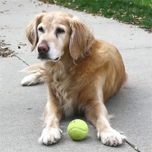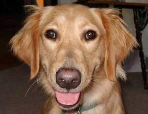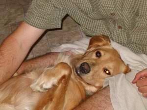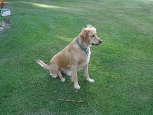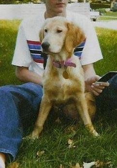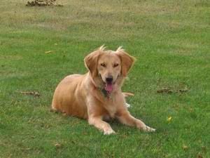 She did have mange when we got her, and it did take about a month and a-half to get rid of it. She is a rather petite thing with very blond, shiny hair. We were very surprised last week when she weighed in at 66 pounds! (She wears it well!) She also had a little hernia that got repaired with her spay.