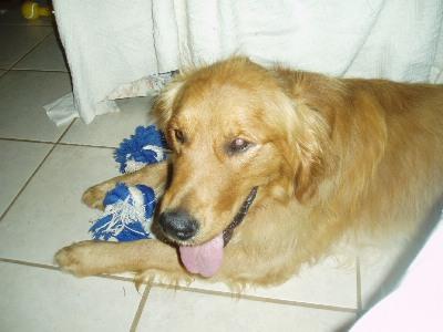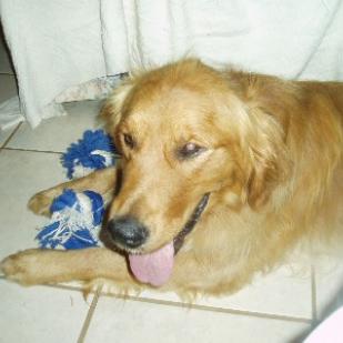 Luke is a 2-1/2 year old, shoulder-to-tail wagging, blocky head, male purebred Golden Retriever. He lived the last few months outside at his previous home and became the dad to Hunter, Holy, Humphrey, Homer, Heidi and Hannah. His fathering days are over however as he was neutered at the vet clinic on Monday prior to coming into foster care. He met the other five dogs here with no problem. He listens well when my females tell him that it's their couch and their toys. He just walks away with his body waggin' in search of a toy to call his own. In typical GR fashion, he does like to carry tennis balls and stuffed toys, but willingly gives it up to me when asked. He was pretty matted when he appeared at the vet clinic over the weekend, so his tail fur and leg feathering are shaved off. It doesn't stop that tail from wagging, he just looks a little funny with a furry Golden body and a skinny hairless tail. But it will grow back. As with any young GR, he could use a little obedience training. He's not bad, likes to jump on the couch which is a no-no right now since he didn't get a bath before his surgery and is a little stinky. Looking forward to when the incisions are healed and he can get his much needed bath. This boy is going to be a great friend and fun buddy for some lucky family. Will write more after he's been here for a few days. He won't be in foster care for long, he's a super nice dog.