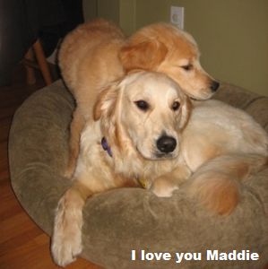Maddie girl has been in my care for almost 2 weeks now, and we absolutely adore her!!! Actually *I* adore her, my almost-3-year old Golden boy, Mason, *really* likes her, and my 3 month old Golden pup, Zach, lives, dies, eats, sleeps, and breathes for her! With good reason, she is truly a gem!
