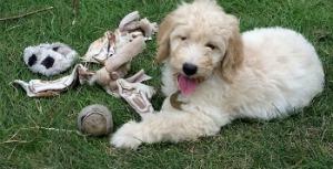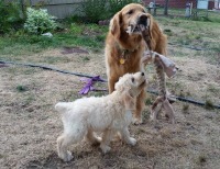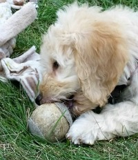 RAGOM is now home to a little Golden doodle puppy called Madeline. Maddie is 11 weeks old and about 11 pounds. Her mother was a Golden retriever and her father, a Standard Poodle. She has a curly poodle coat and is absolutely adorable.