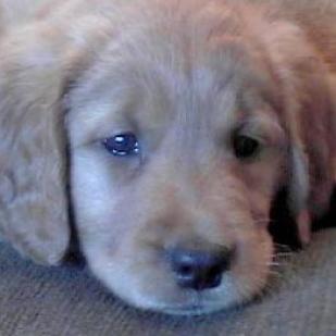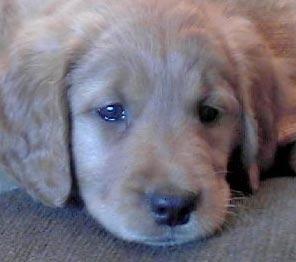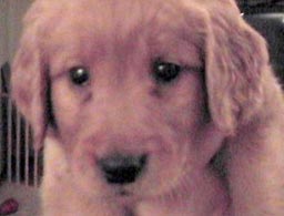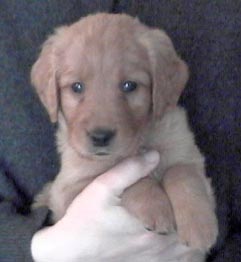 Peanut was born around 10/21/01- seven weeks old. Peanut is a dark wavy coated golden, with a very plump little shape right now. He weighs six pounds or so. He has a pretty calm disposition, and gentle. He looks like a perfect golden. Not available until after December 17. Right now Peanut is sleeping inside the left arm of my shirt, he likes to cuddle.