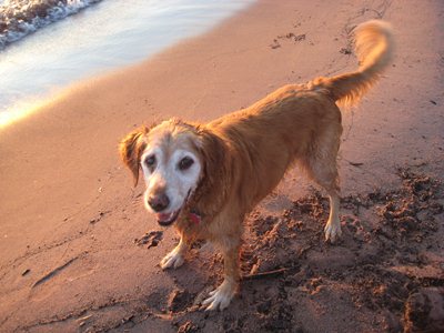 She was diagnosed with kidney disease/failure on Sept 1, 2010. We absolutely treasured spending a lovely warm fall, another Thanksgiving, Christmas, AND....celebrated her 17th Birthday on January 16th with her!! She made it through early spring and passed over to her sweet beach in heaven on April 26th. Our awesome vet, Dr. Tim Hunt, let us know he's never seen a golden live such a long, healthy life.
